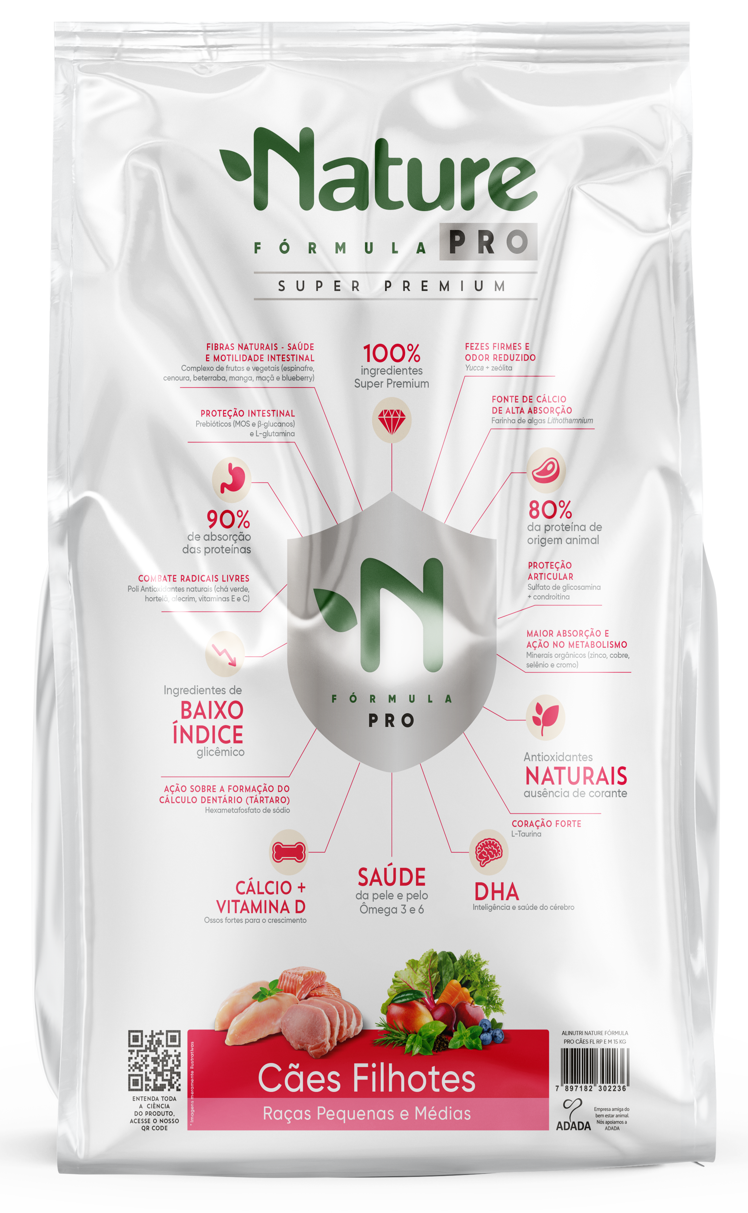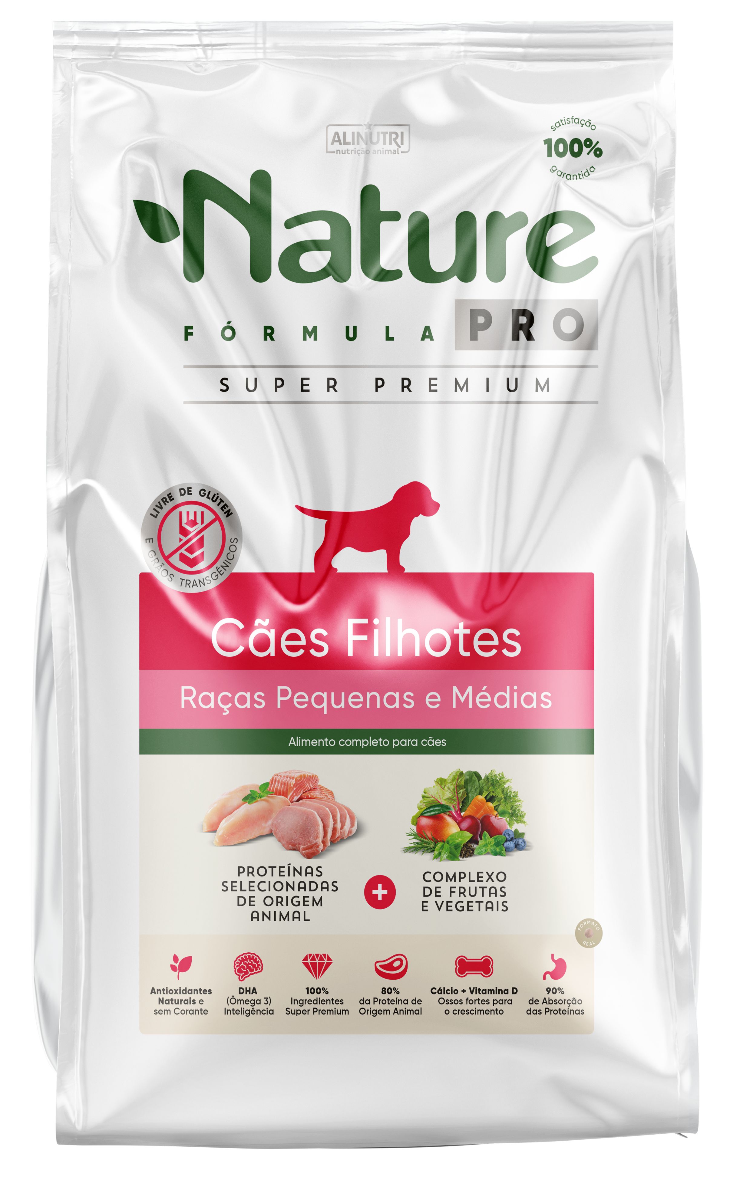 Alinutri Nature Fórmula PRO é ideal para filhotes de raças pequenas e médias. Este alimento completo fornece todos os nutrientes essenciais para uma dieta equilibrada e saudável para o seu cão.