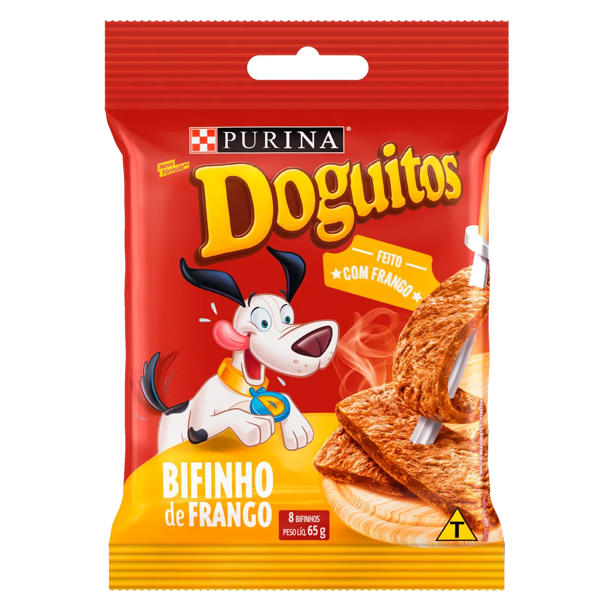 DOGUITOS® são petiscos inspirados nas mais deliciosas carnes, preparados especialmente para o seu cão. A cada mordida, muita água na boca! Ele não vai resistir!