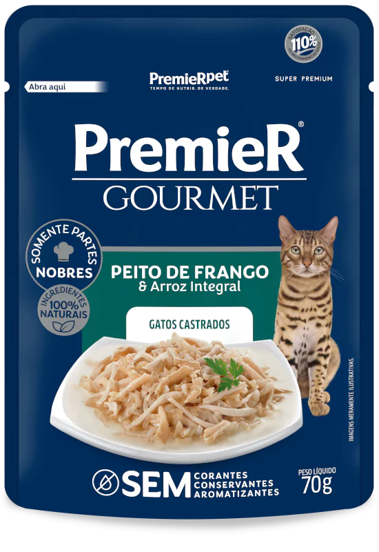 Sachê PremieR® Gourmet Gatos Castrados Peito de Frango e Arroz Integral